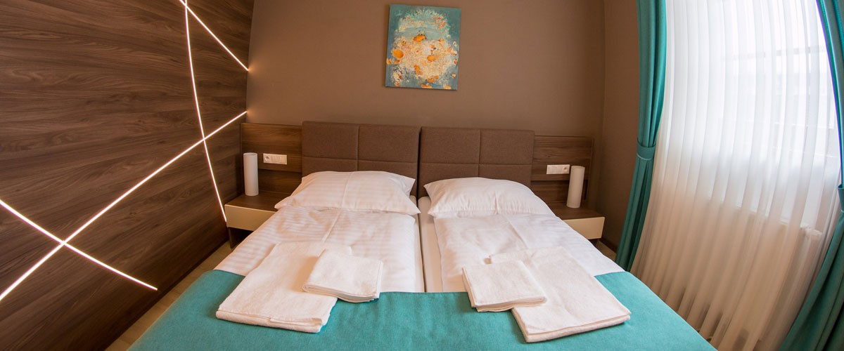 Ponúkame Vám dvojlôžkové izby vyššieho štandardu a dovolenkové apartmány pre rodiny s deťmi.